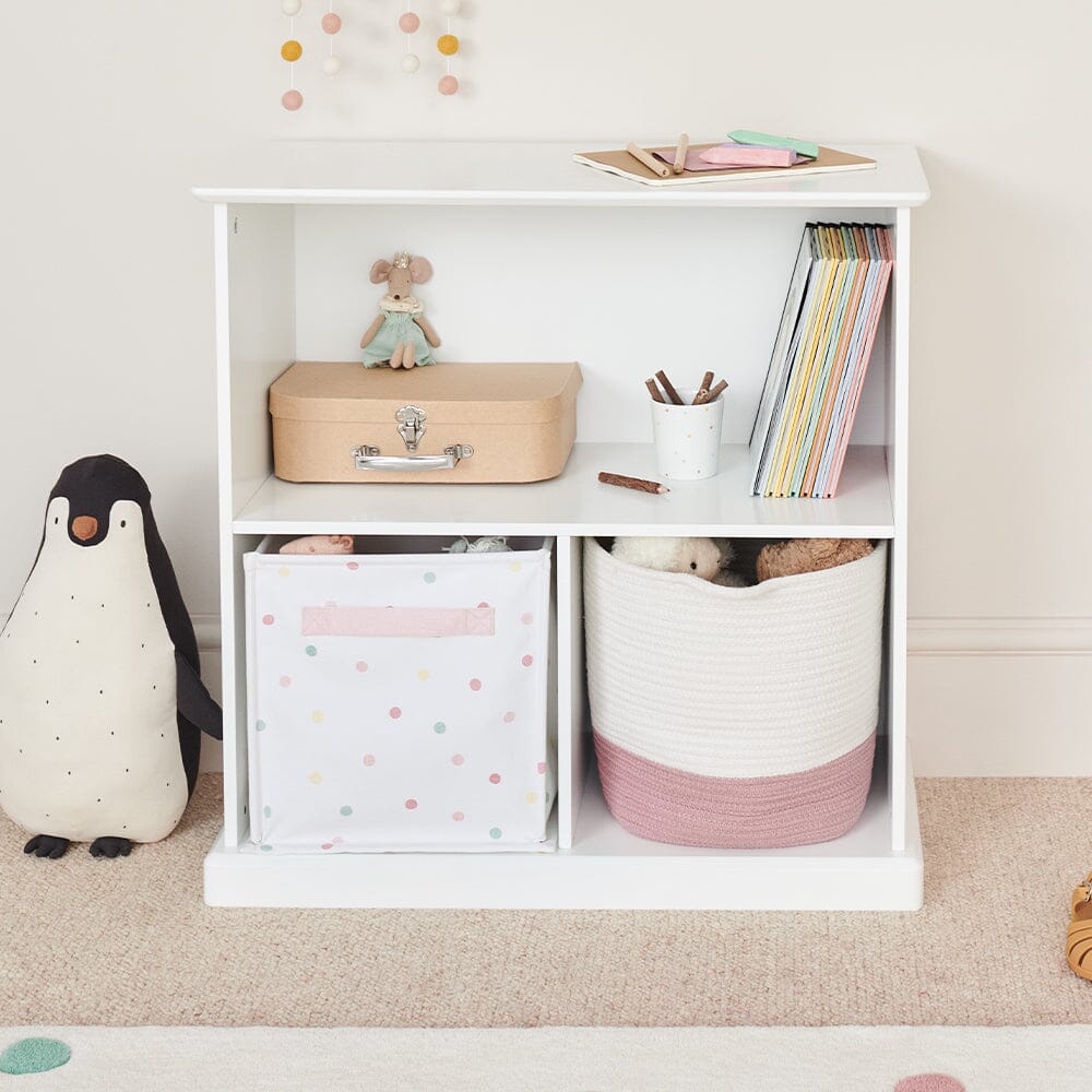 We're completely dotty about this canvas storage cube in pretty pastel shades. A customer favourite and tidy up essential, this little stow away will help keep rooms clutter free at the end of a busy day of play. Thanks to its clever flexi-frame structure, it neatly folds flat when not in use.